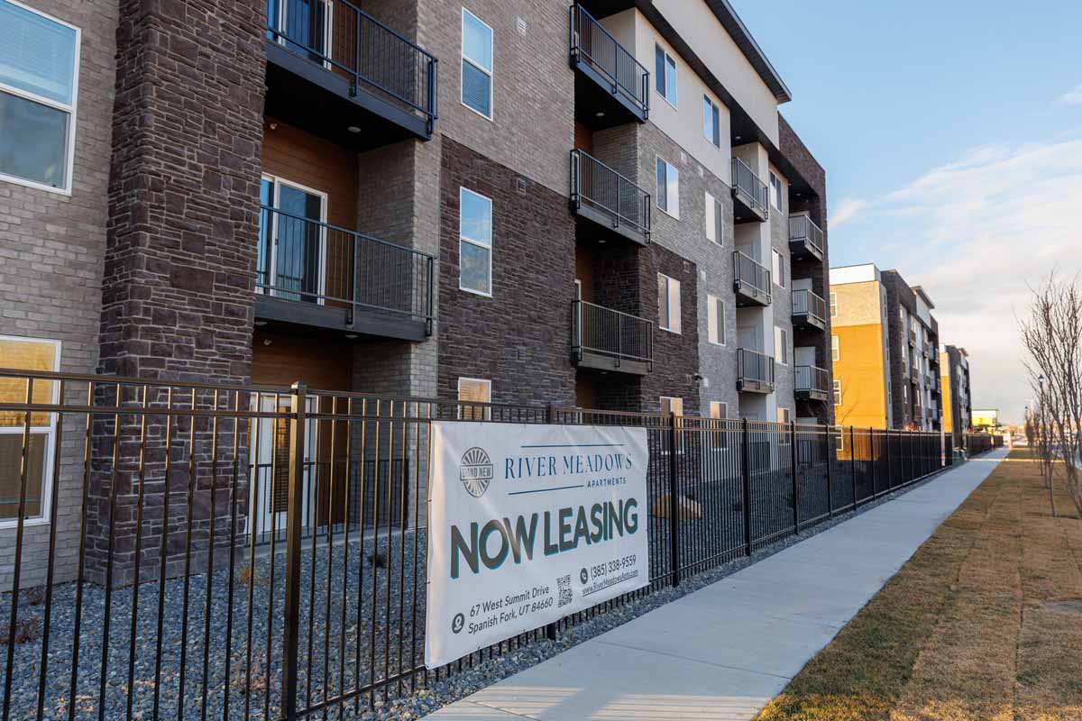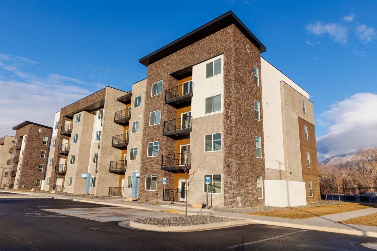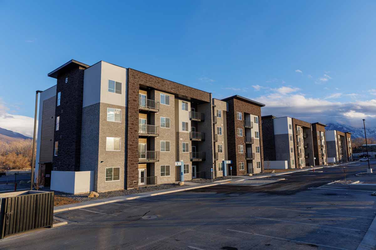 The project features wood framing for four 33,100-square-foot apartment buildings, each housing 32 units.