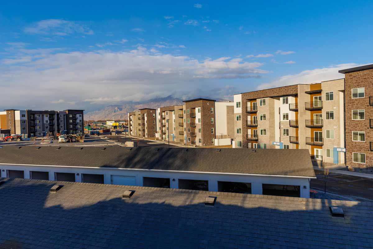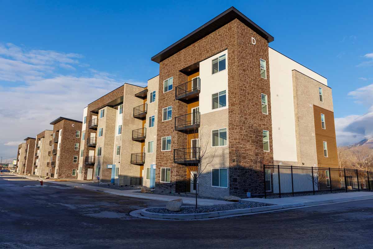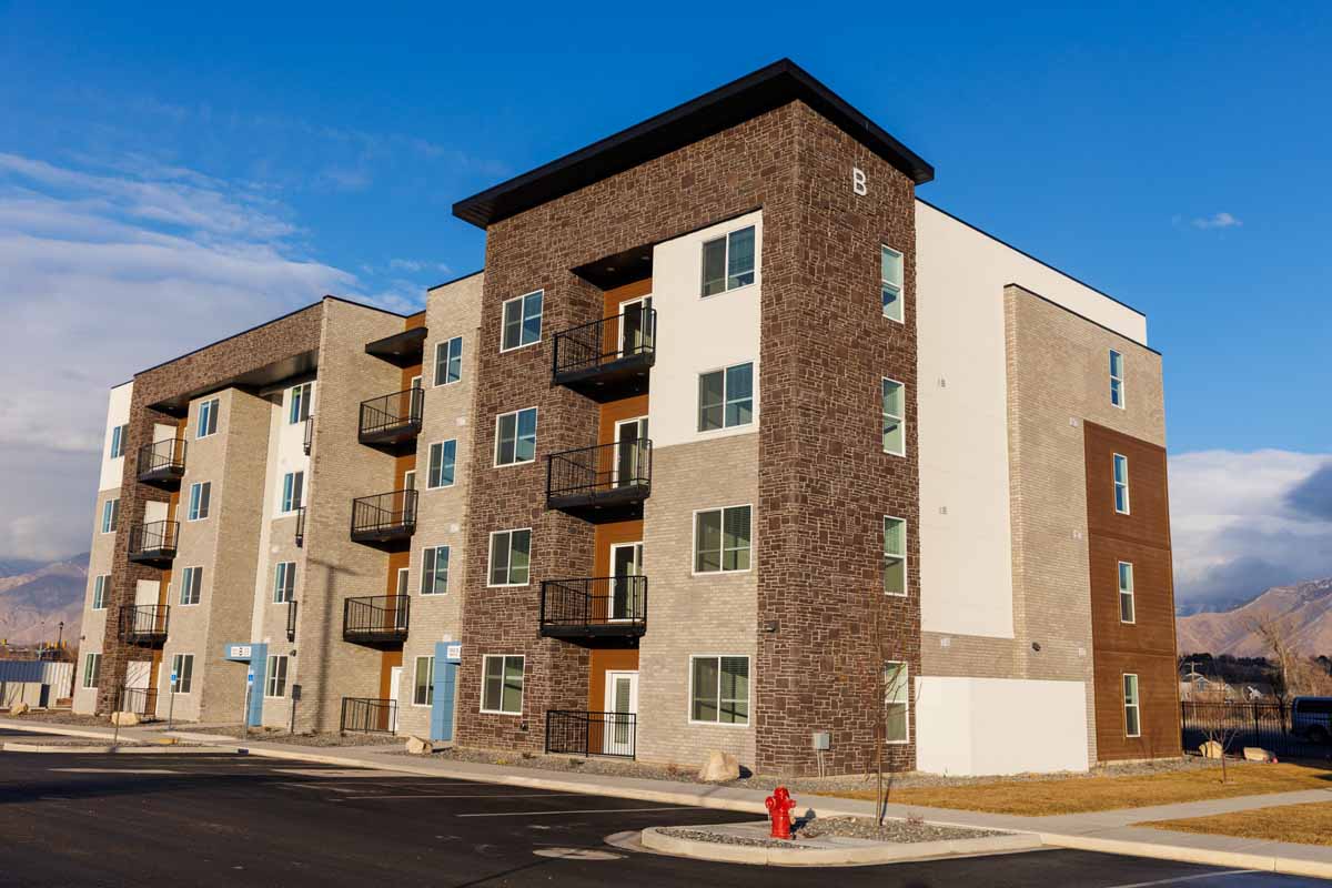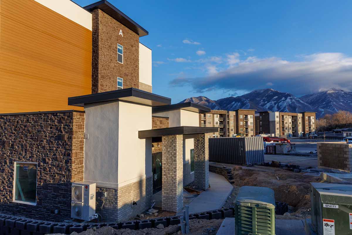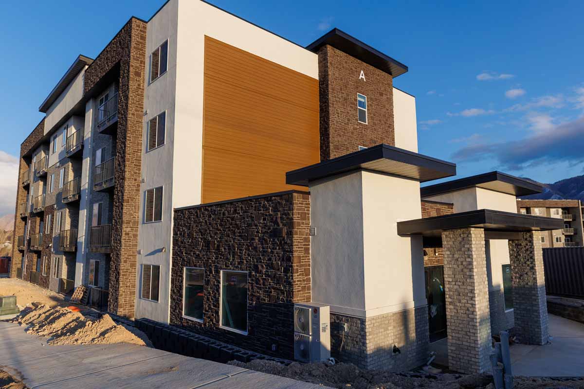 This project features standard wood framing with printed plates, pre-cut components, and pre-manufactured truss floor systems, across four Type V buildings.